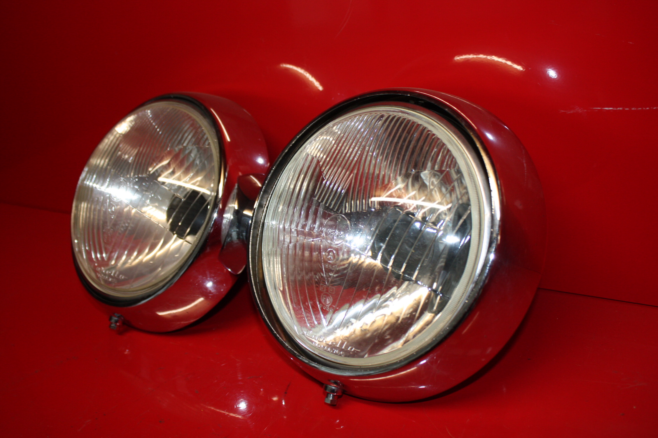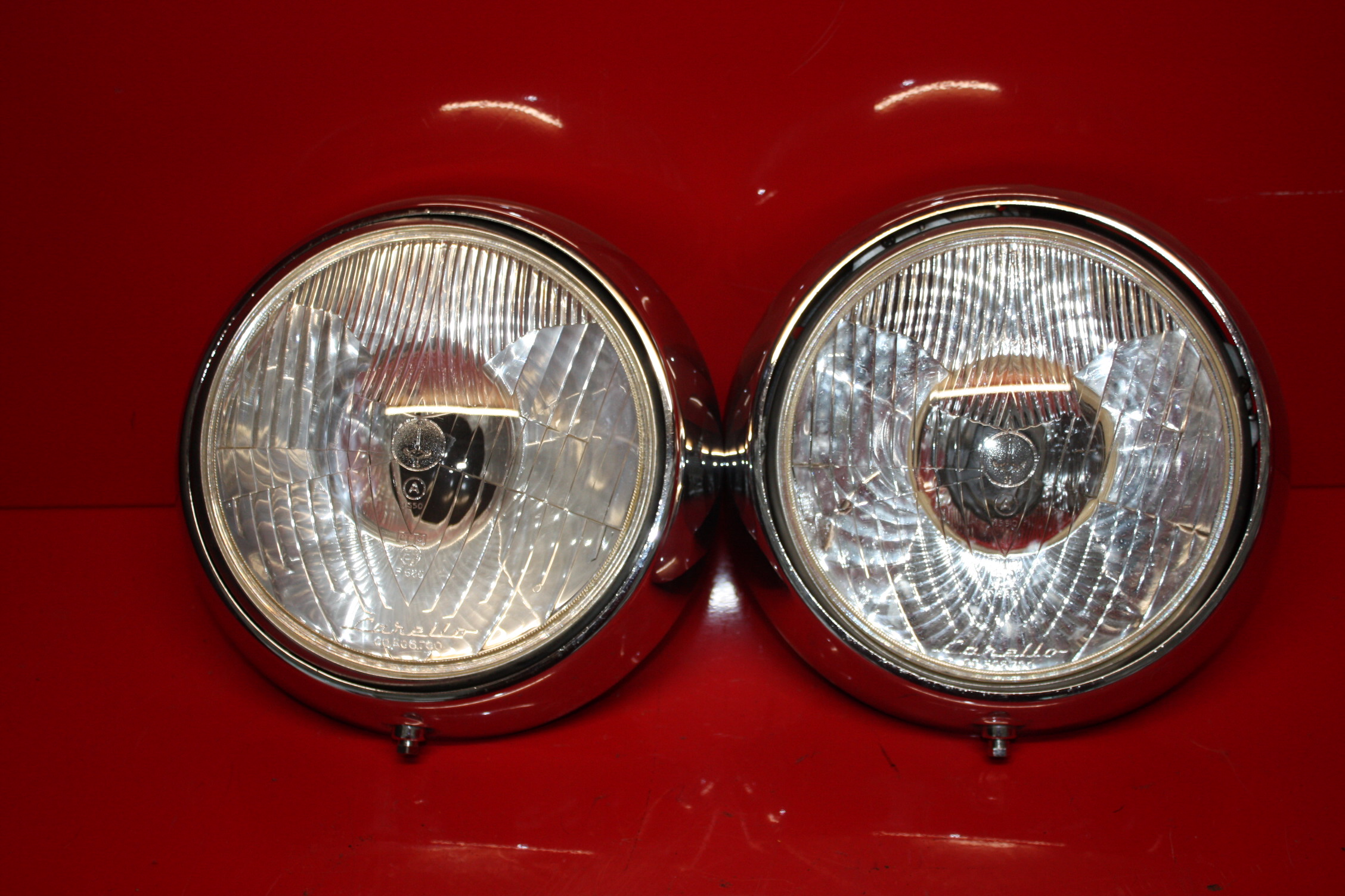 Fanali anteriori per Alfa Romeo 2000 spider touring e Giulietta spider 1 serie ORIGINALI in ottime condizioni con tazze porta faro originali, completi